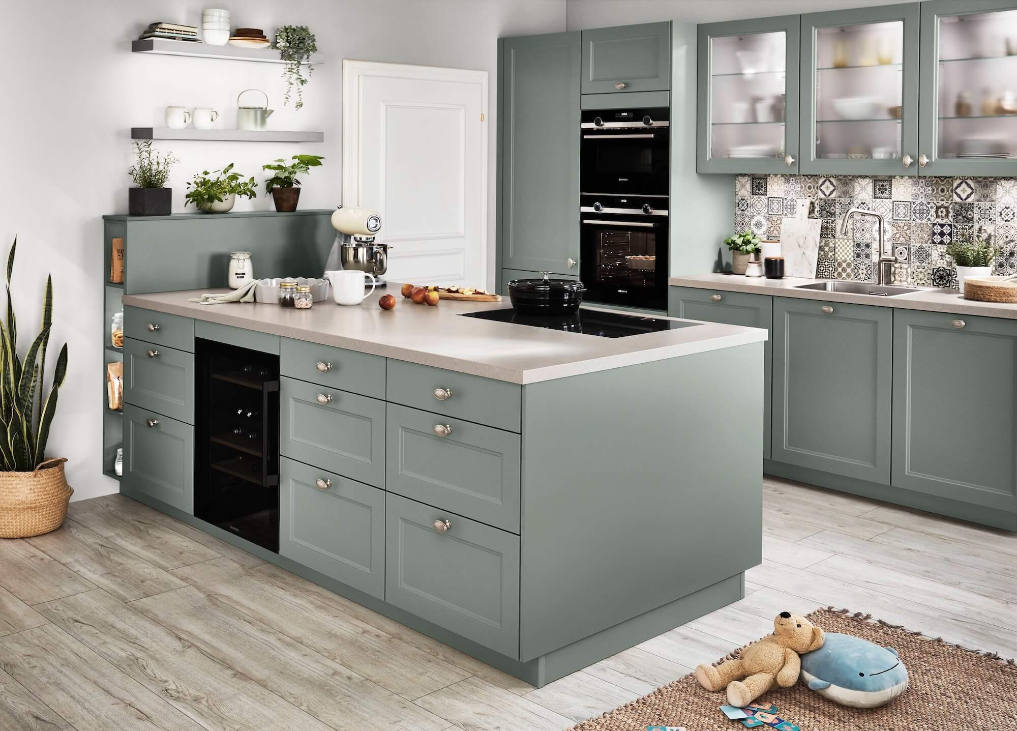 Der Landhausstil steht für ein wohnliches Ambiente und einen Hauch von Nostalgie. Fernab von altmodischen Klischees präsentiert sich die moderne Landhausküche heute oft skandinavisch-frisch oder im eleganten „Modern Country“-Look. Charakteristisch sind bei dem Küchenstil natürliche Materialien, der Fokus auf Holz sowie liebevolle Details wie Rahmenfronten, Kranzleisten oder Pilaster. Besonders in Kombination mit traditioneller Handwerkskunst und rustikalen Details entsteht so eine gemütliche Küche, in der die ganze Familie gerne zusammenkommt.